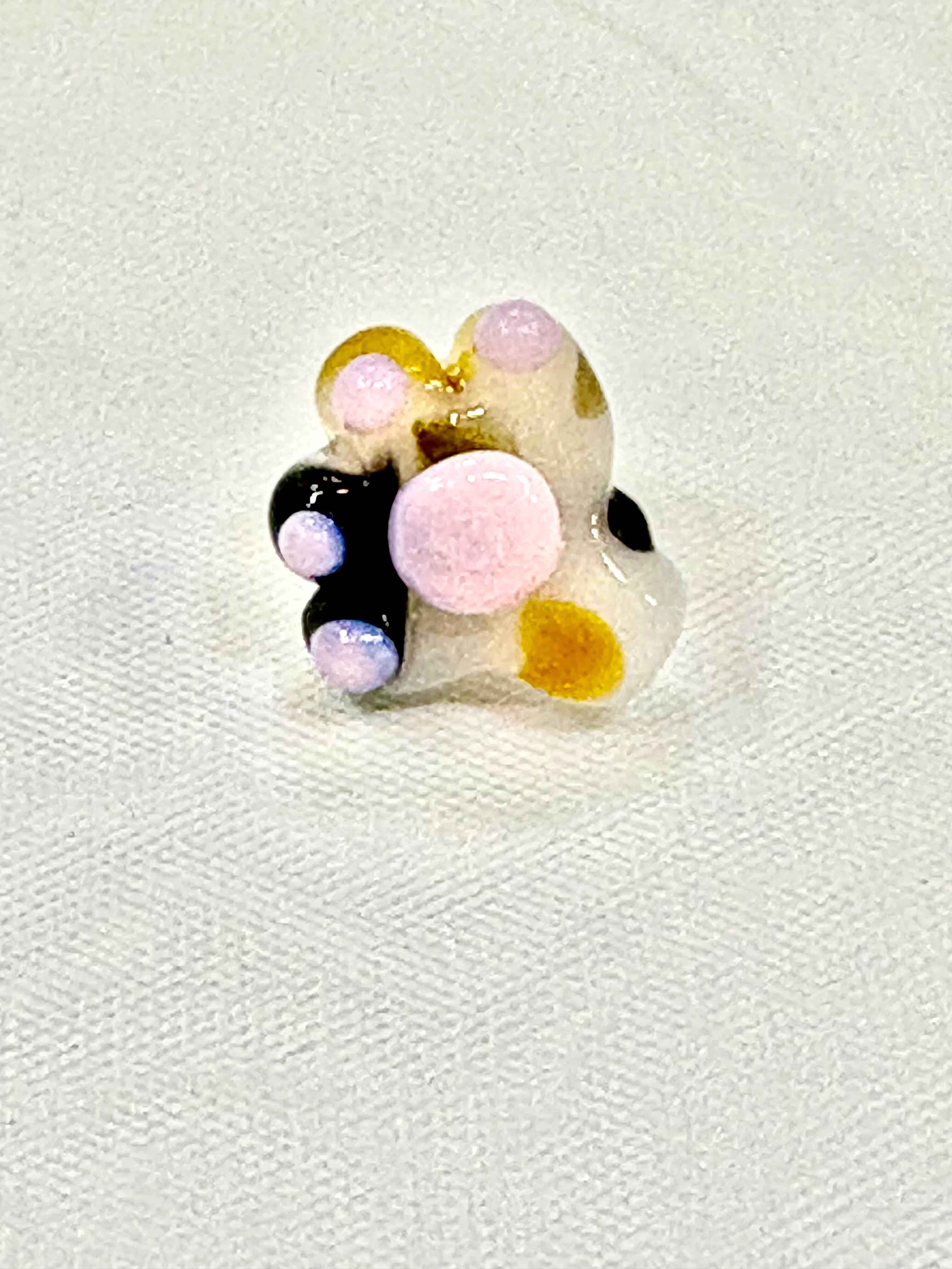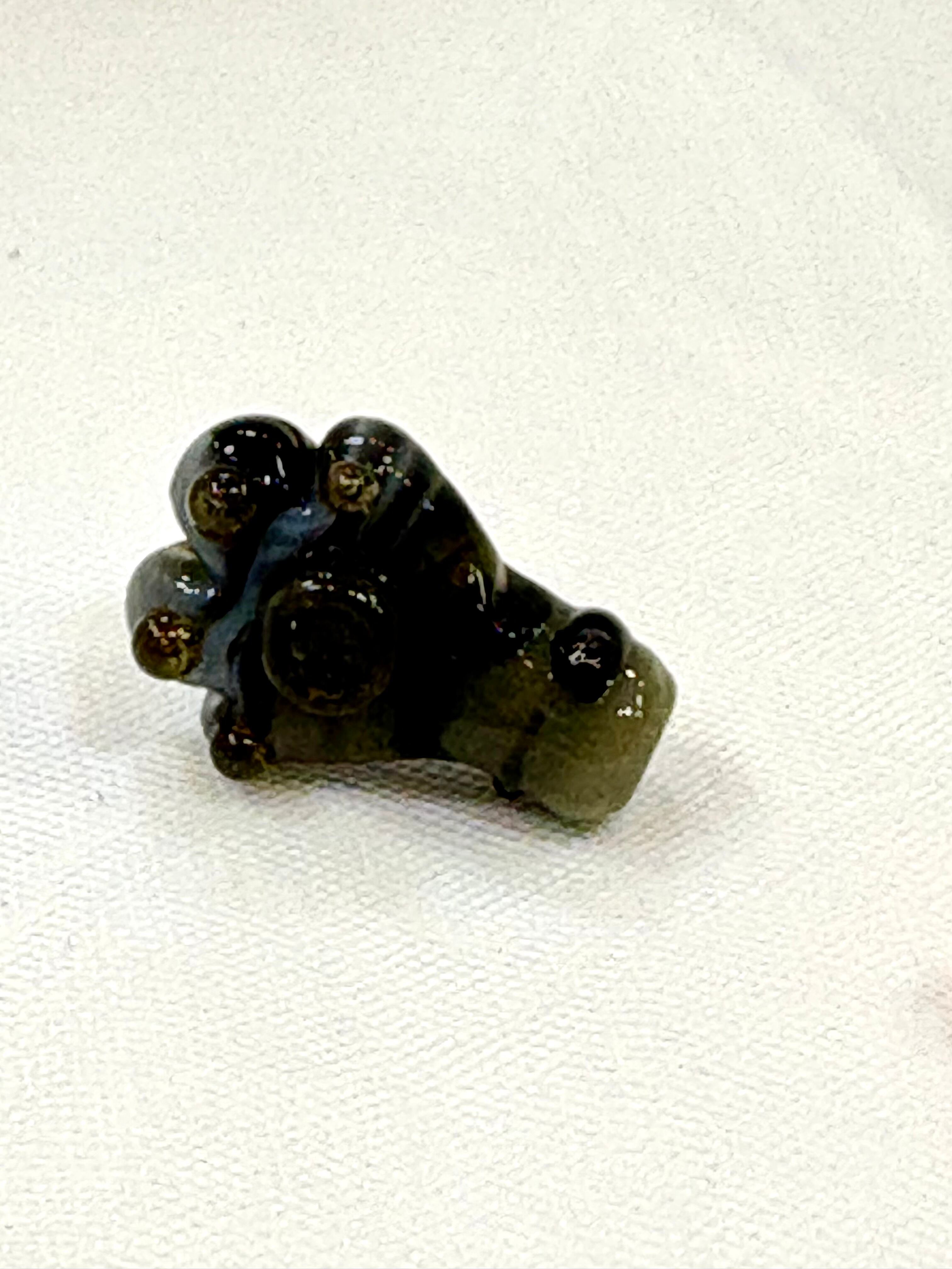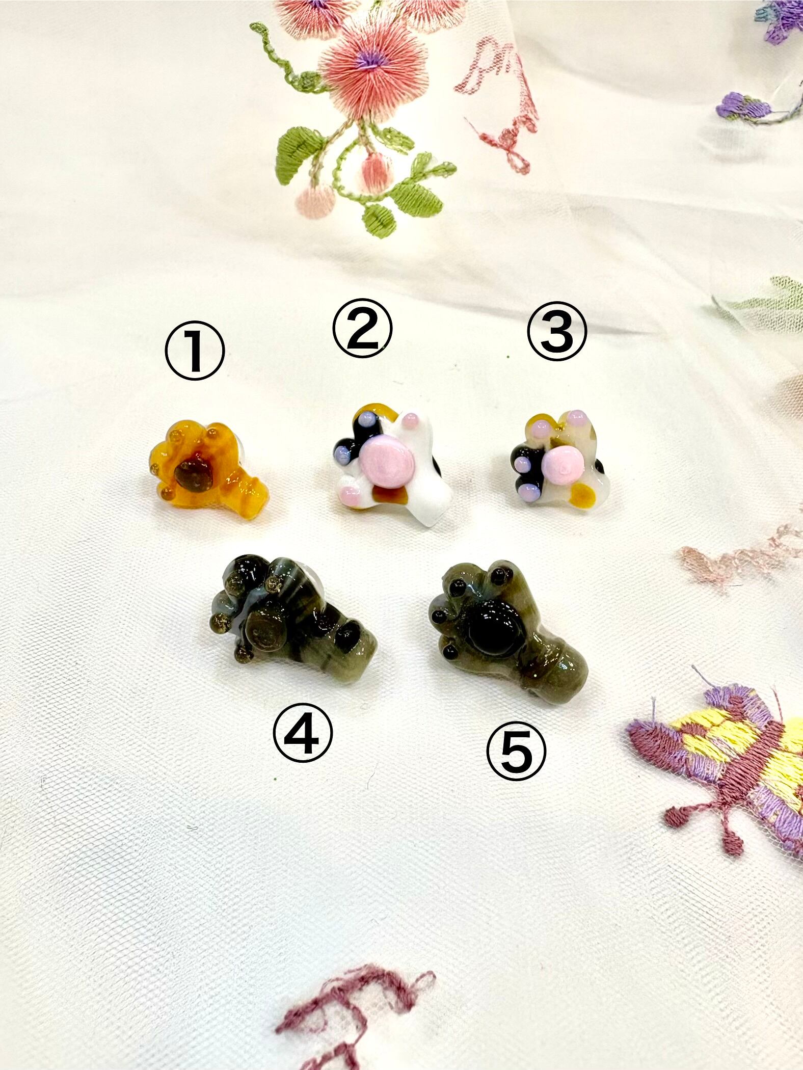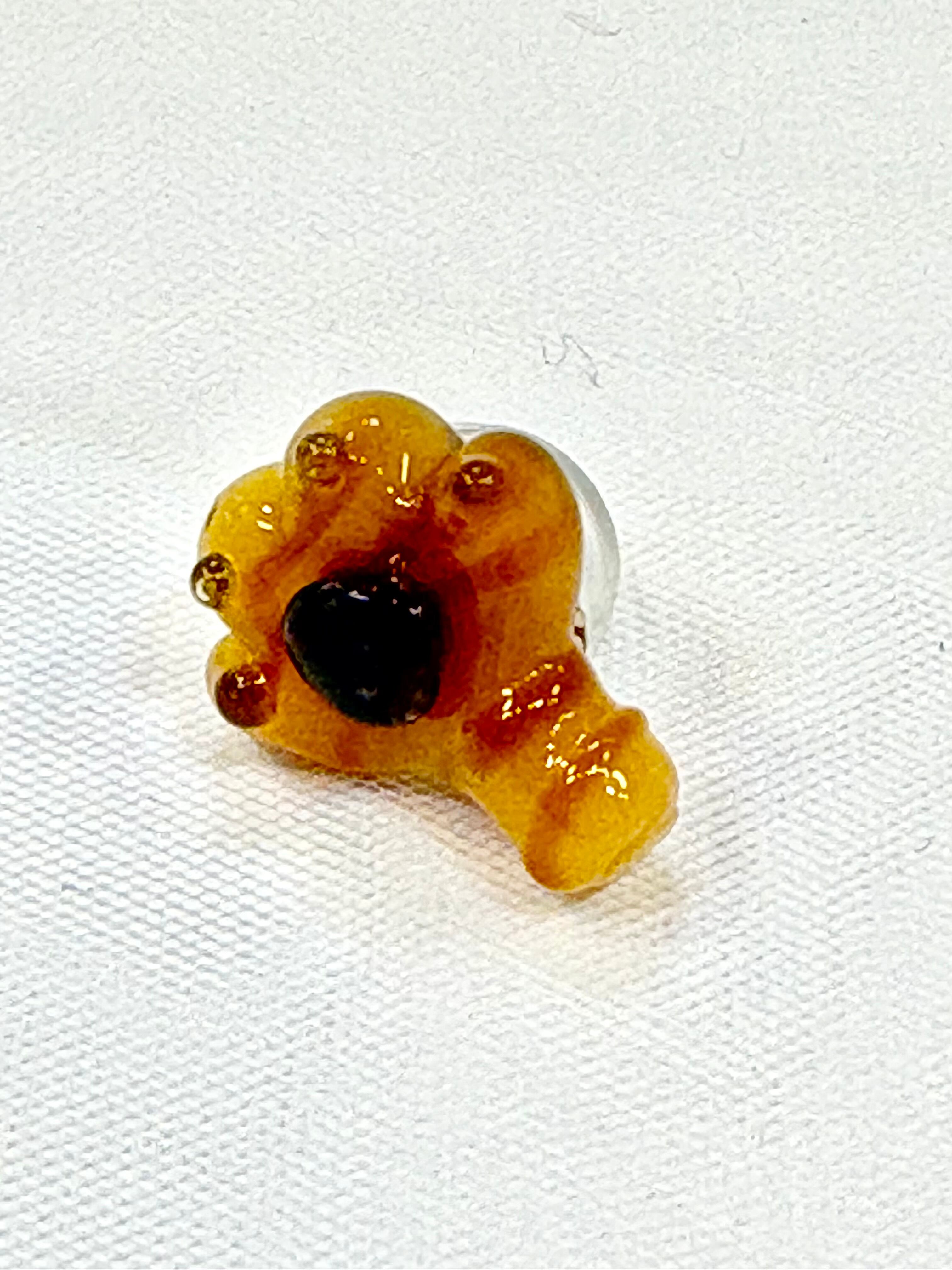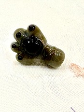 ボロシリケイトガラスで作ったにゃんこのおててにピンブローチの金具をつけました